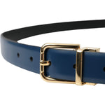 Dolce & Gabbana Blue Calf Leather Gold Metal Buckle Belt Men
