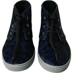 Dolce & Gabbana Blue Calfskin Leopard Mid Top Sneakers Shoes