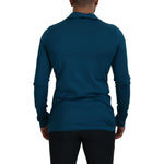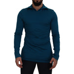 Dolce & Gabbana Blue Cotton Collared Slim Pullover Sweater