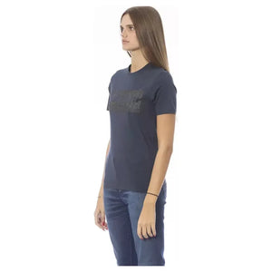 Unleash your inner fashionista with the Baldinini Trend short sleeve T-shirt, where luxury meets casual sophistication. Featuring a statement print on the front, this piece is a sartorial emblem crafted to elevate your everyday ensemble. Its chic crew neck and pure cotton comfort make it a quintessential addition to your curated wardrobe. Dare to stand out in a blue hue that captures attention and embodies the brand’s bold aesthetic.