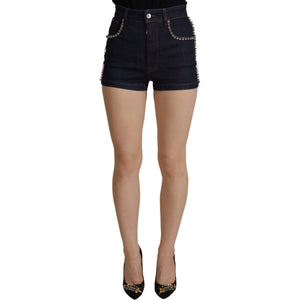 Dolce & Gabbana Blue Denim Stretch Crystal Hot Pants Shorts