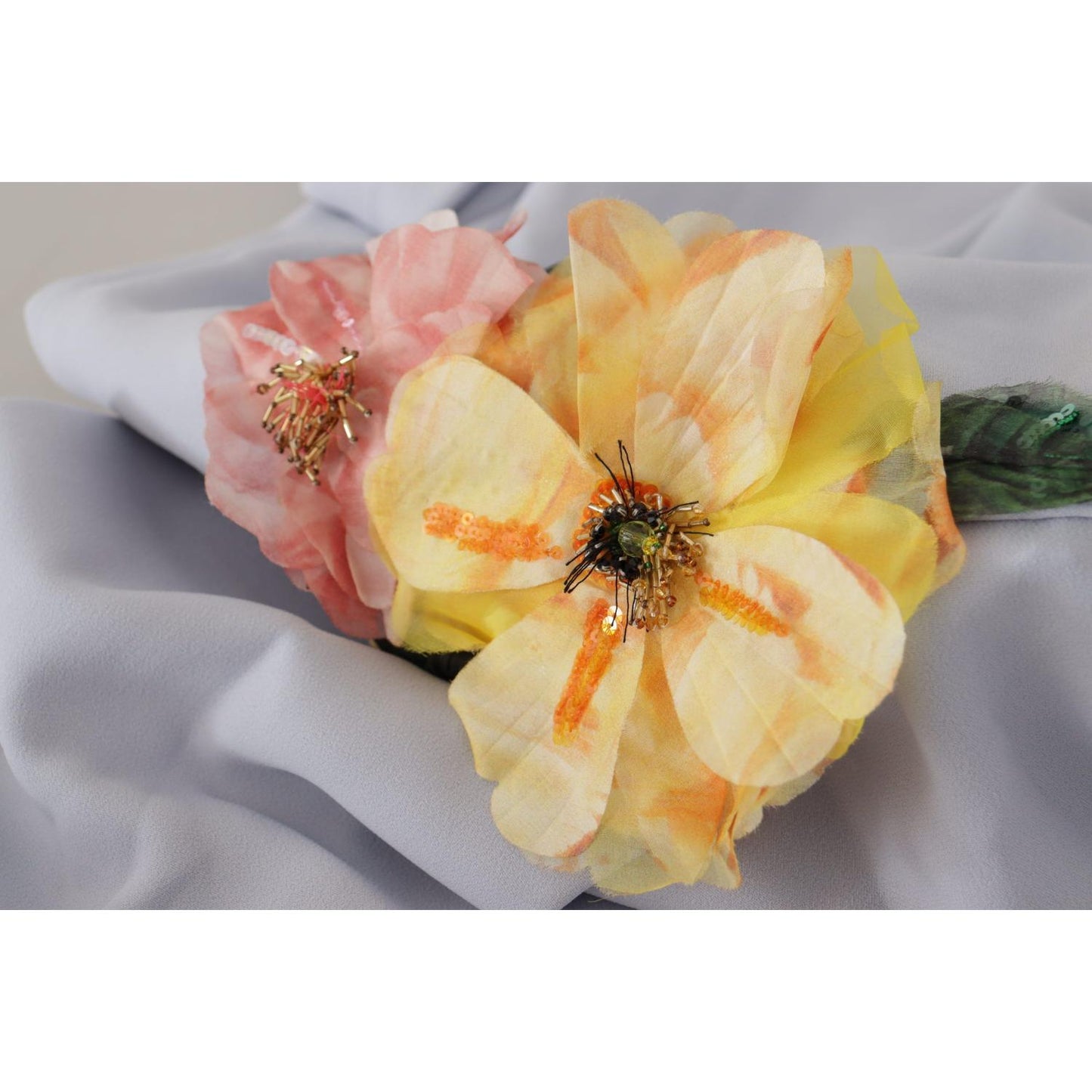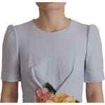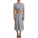 Dolce & Gabbana Blue Floral Applique Midi Viscose Dress