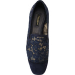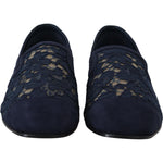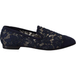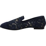 Dolce & Gabbana Blue Floral Lace Slip Ons Loafers Flats Shoes