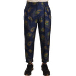 Dolce & Gabbana Blue Peacock Print Tapered Trousers Silk Pants