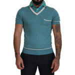 Dolce & Gabbana Blue Silk Polo Top Mens V-neck T-shirt