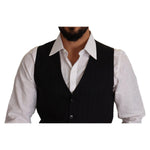 Dolce & Gabbana Blue Striped Wool Stretch Waistcoat Vest