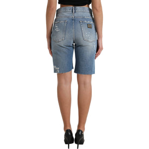 Dolce & Gabbana Blue Tattered Embellished Bermuda Shorts
