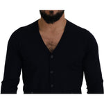 Dolce & Gabbana Blue Wool STAFF Down Cardigan Sweater
