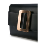 Custodia da viaggio con fibbia in pelle nera di Boyy con parte superiore pieghevole e corpo rettangolare. Buckle Travel Case leather crossbody bag Size and Fit - Width 21 cm. Height 16 cm. Depth 3.5 cm