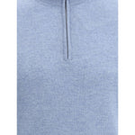 Cashmere Sweater by Brunello Cucinelli combines elegance and functionality in a garment with a refined style. Made of soft, high-quality cashmere, it features a monochrome pattern that enhances the purity of the design. The high collar is complemented by a front half-bust zipper closure, a detail that adds practicality and a sporty touch. The ribbed hem and regular fit ensure comfort and a flawless silhouette. Perfect for casual-chic looks or to add a touch of class to everyday wear.