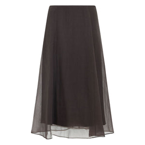 dark brown layered design elasticated waistband flowing silhouette lightweight construction Silk long skirt Size and Fit - This piece fits true to size. We recommend you get your regular size. Model is 1,75m / 5ft 8in wearing size 40 (IT)