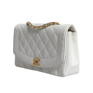 Chanel White Medium Classic DIANA Shoulder Bag Gold Plated Purse