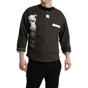 Dolce & Gabbana Dark Gray Cotton Button Down Pullover Sweater