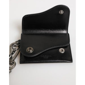 Dolce & Gabbana Black Cavallo Leather Wallet Chain Snap Bifold Card Holder displayed on a white background.