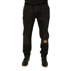 Dolce & Gabbana Black Ripped Logo Cotton Skinny Denim Jeans