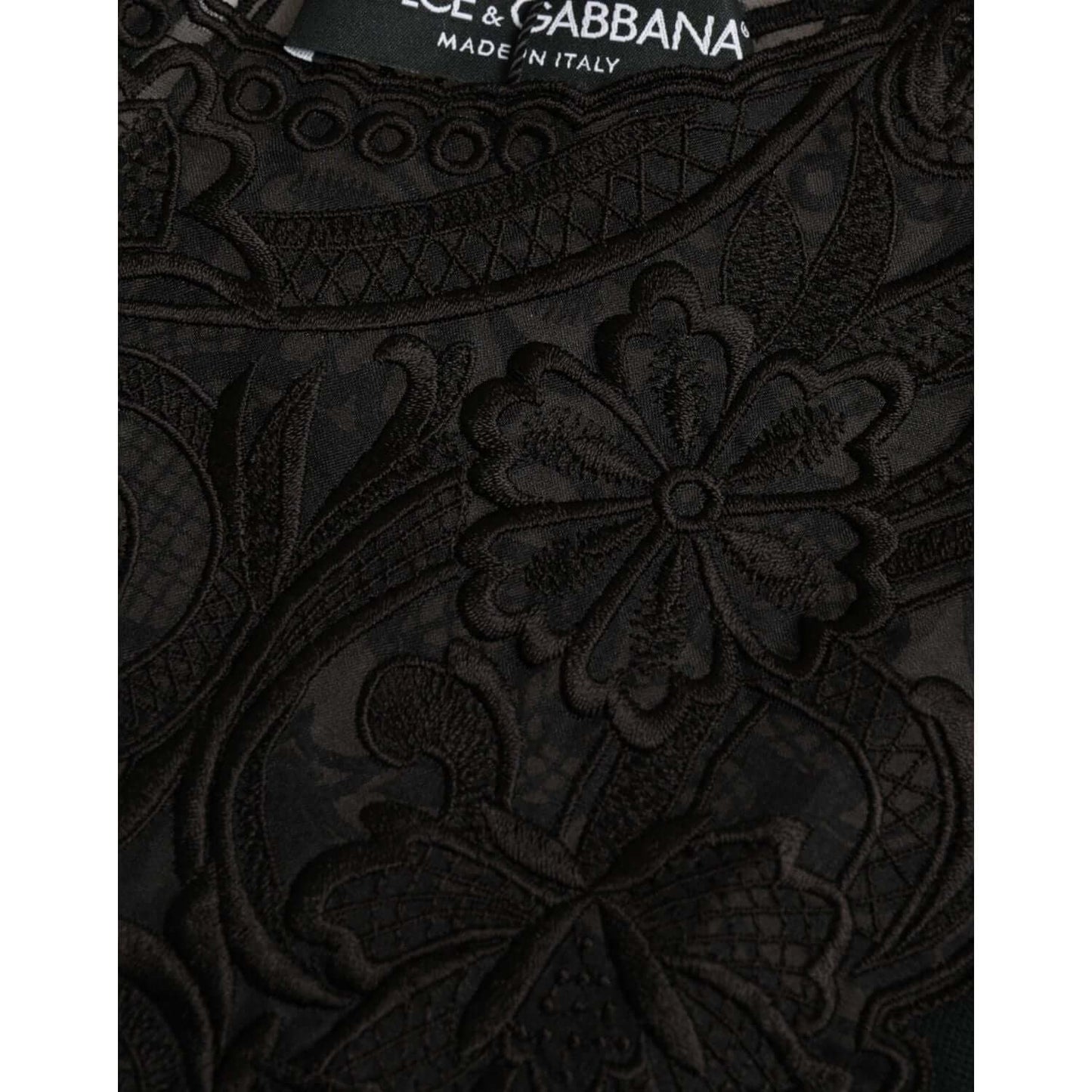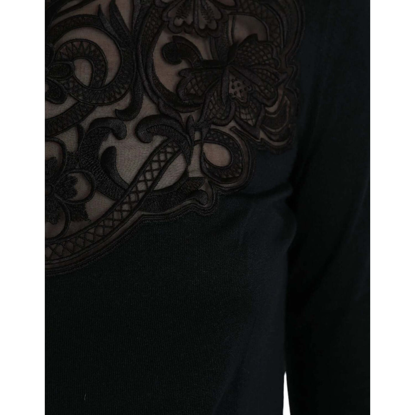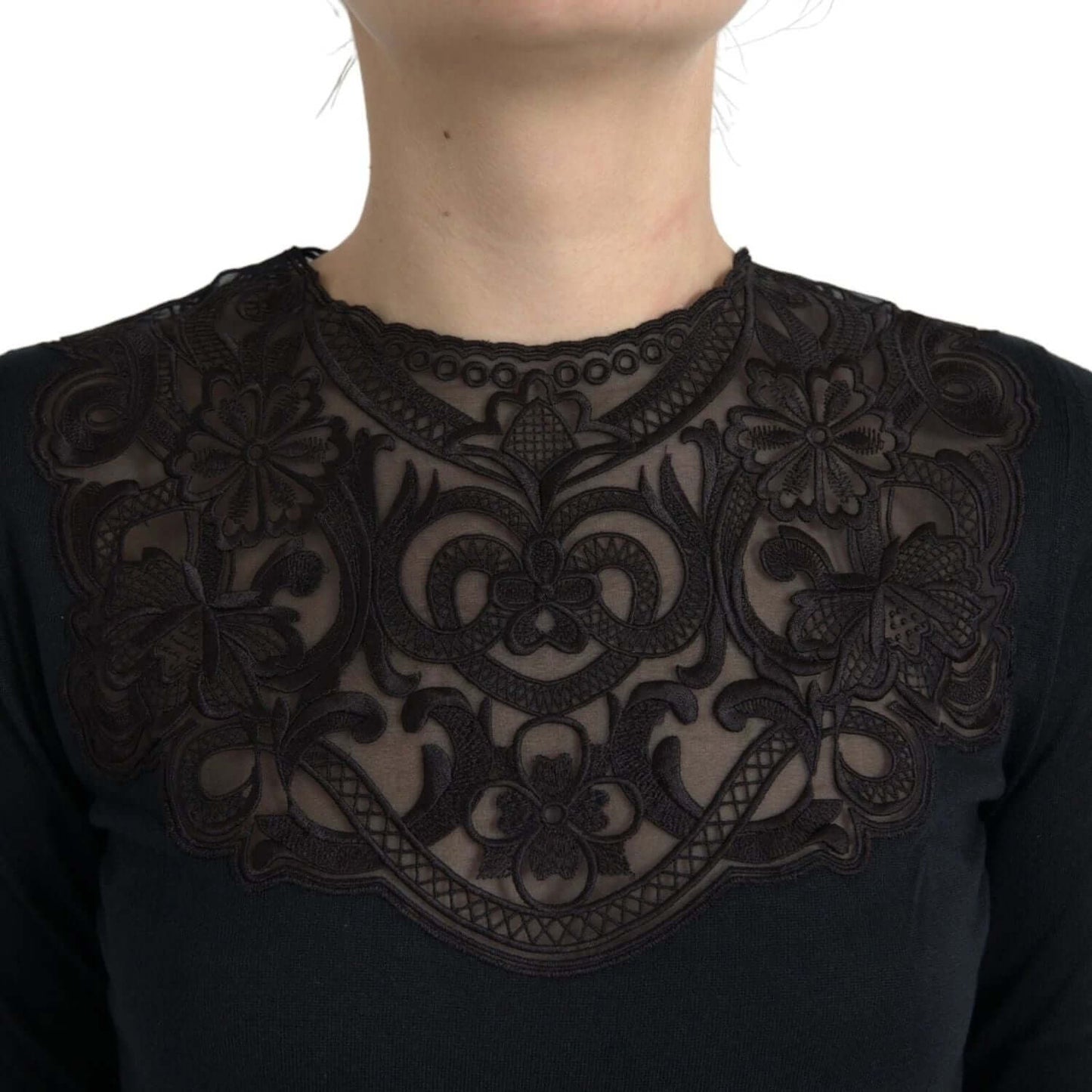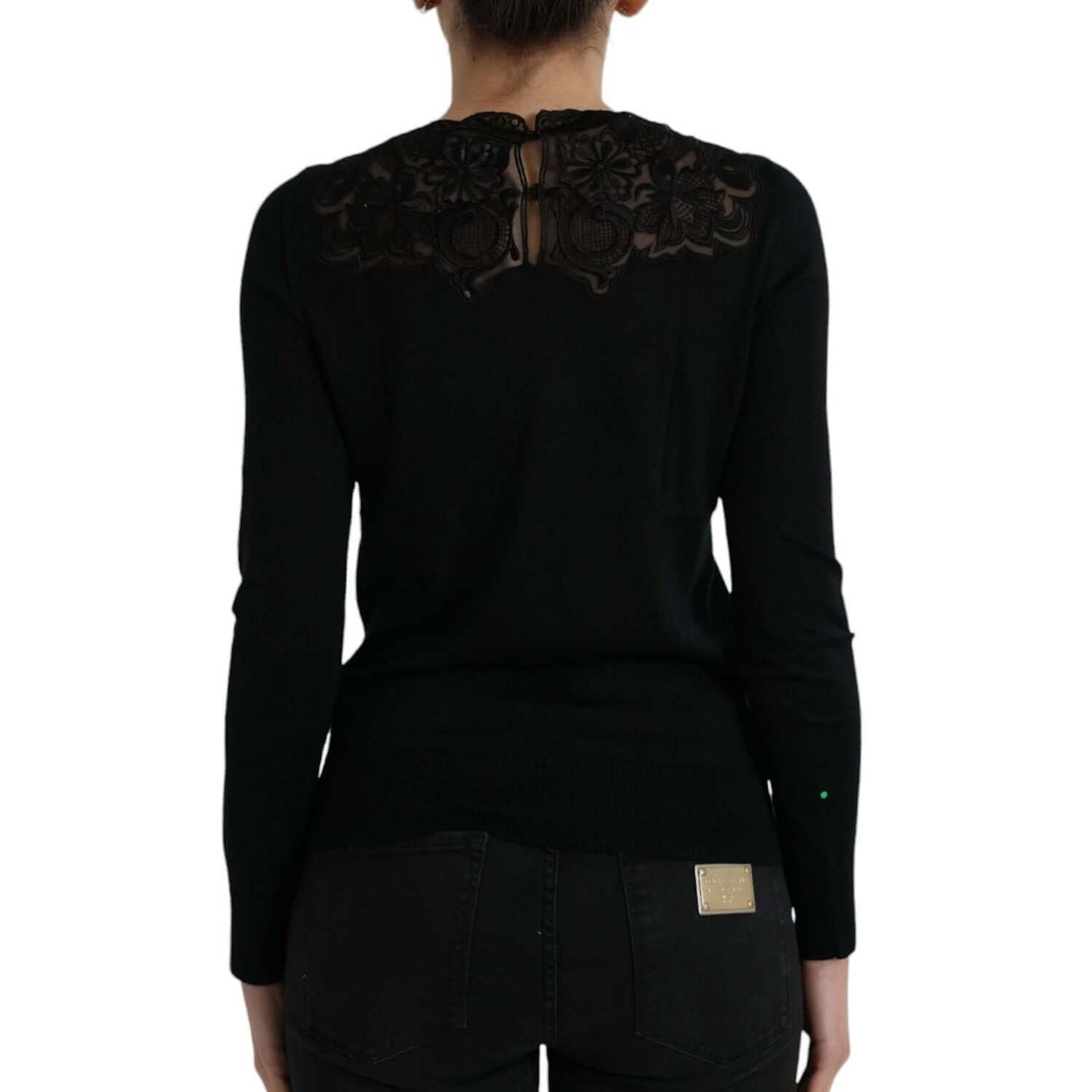 Dolce & Gabbana Black Silk Lace Trim Long Sleeves Blouse Top