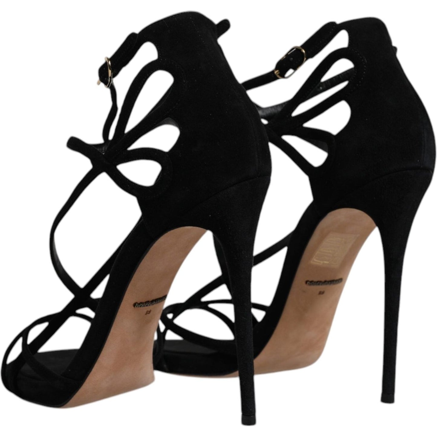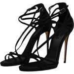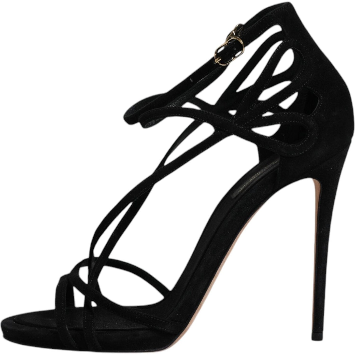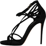 Dolce & Gabbana Black Suede Ankle Strap Heels Sandals Shoes