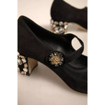 Dolce & Gabbana Black Suede Jewelled Mary Jane Pumps Shoes