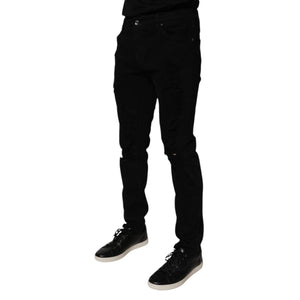 • Dolce & Gabbana Black Tattered Cotton Skinny Men Denim Jeans