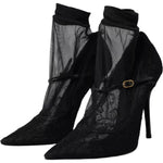 Dolce & Gabbana Black Tulle Stretch Boots Pumps Shoes