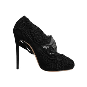 Dolce & Gabbana Black Tulle Stretch Heels Mid Calf Boots Shoes