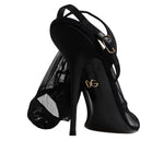 Dolce & Gabbana Black Tulle Stretch Heels Sandals Shoes