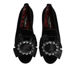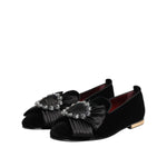 Dolce & Gabbana Black VATICANO Crystal Ribbon Slip On Shoes