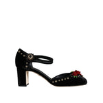 Dolce & Gabbana Black Velvet Roses Ankle Strap Pumps Shoes