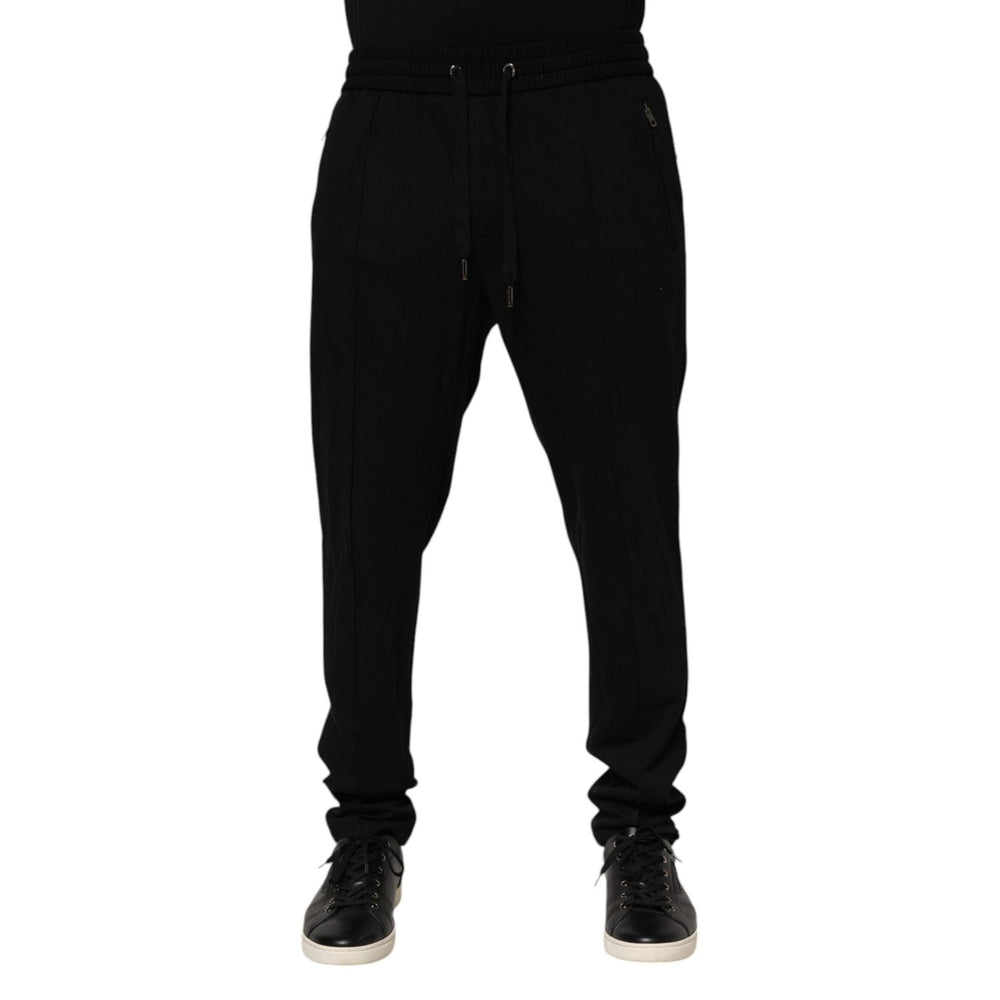 Dolce & Gabbana Black Viscose Skinny Logo Men Jogger Pants