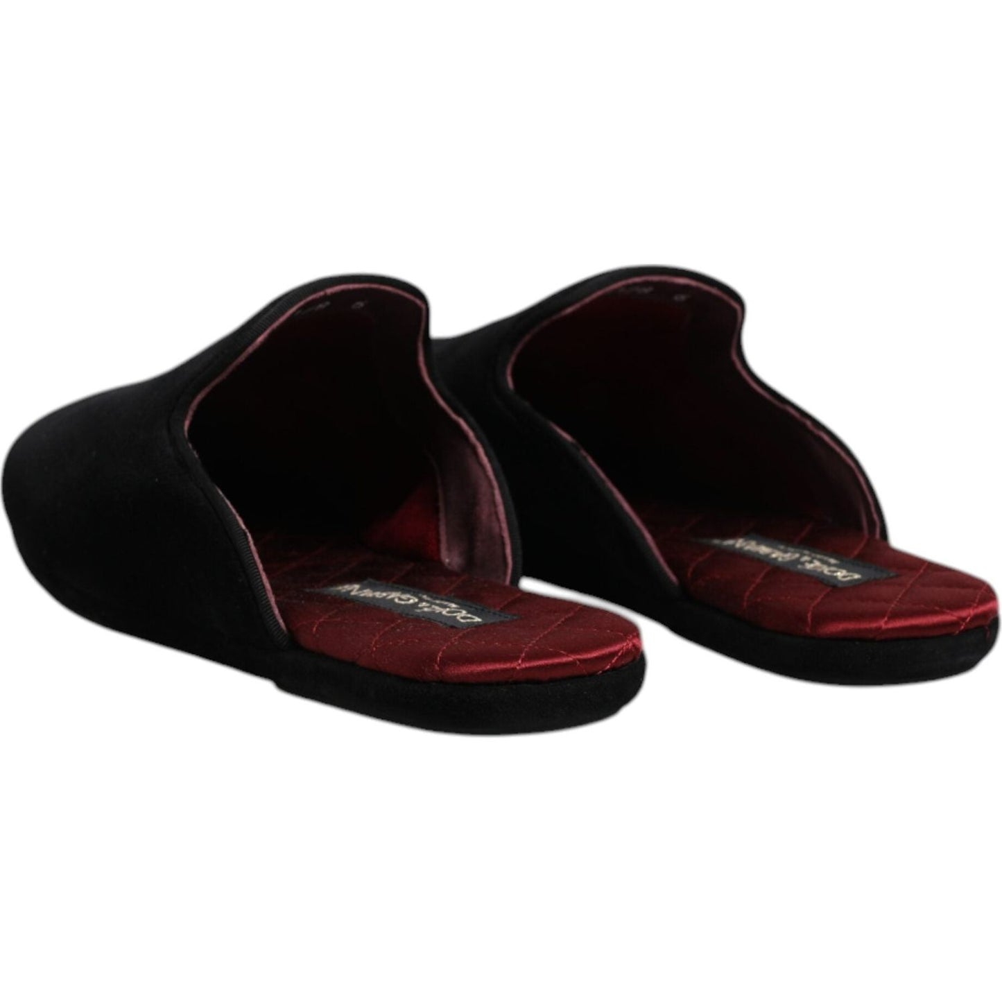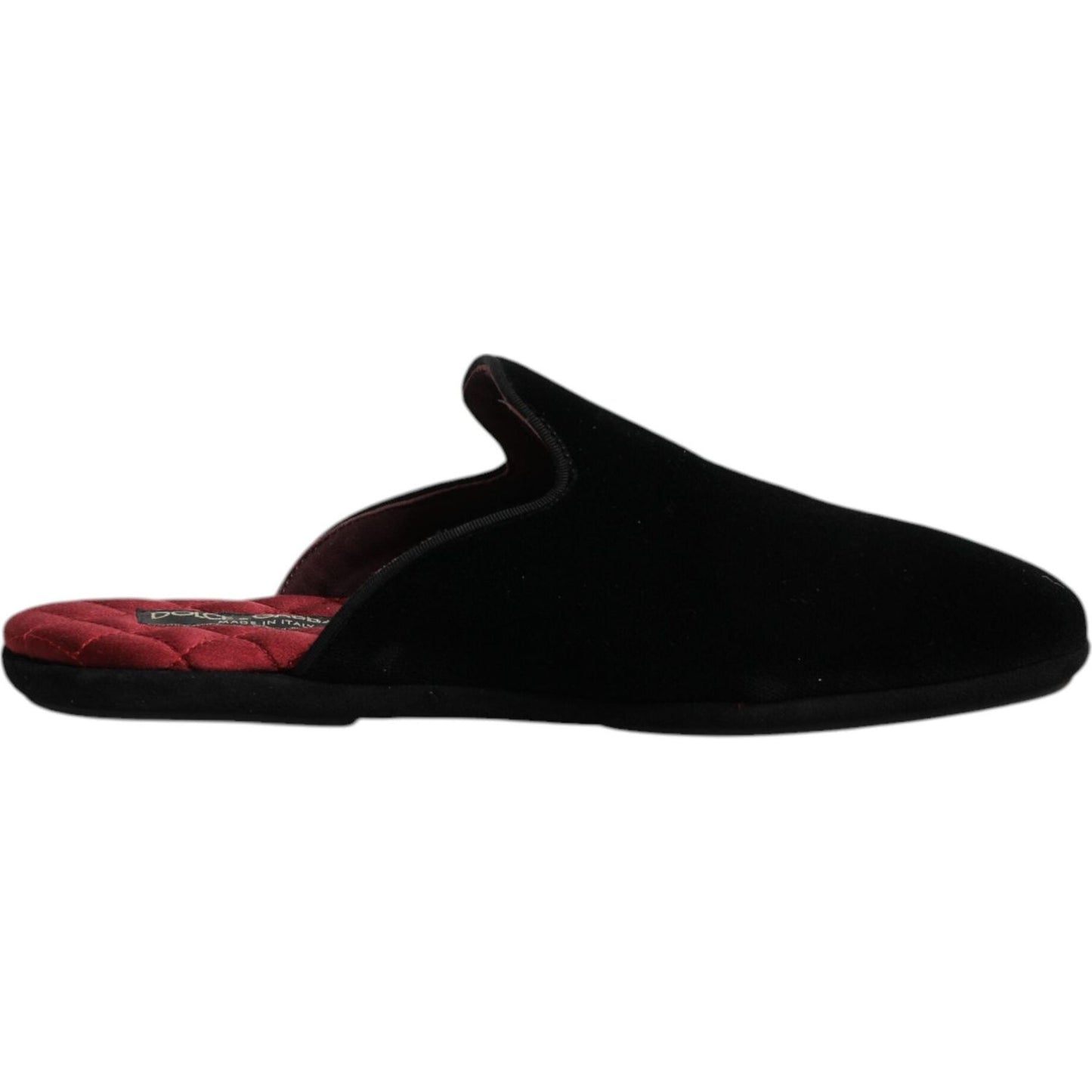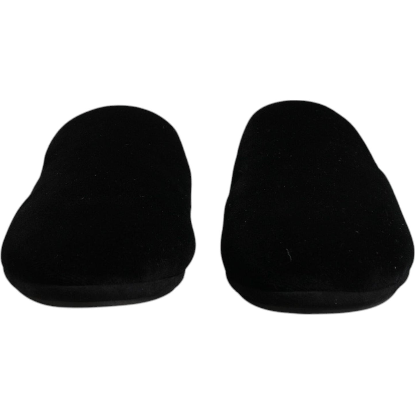 Dolce & Gabbana Black Viscose Velvet Slides Flat Slipper Shoes