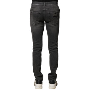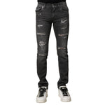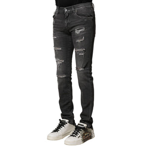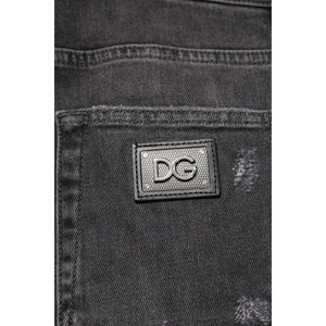Dolce & Gabbana Black Washed Tattered Slim Fit Denim Jeans
