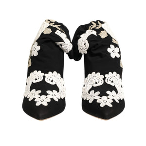 Dolce & Gabbana Black White Embroidered Jersey Stiletto Boots Shoes