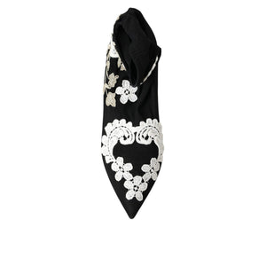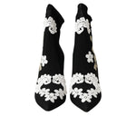 Dolce & Gabbana Black White Embroidery Slip On Boots Shoes