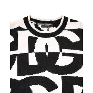 • Dolce & Gabbana Black White Knit Logo Print Pullover Sweater