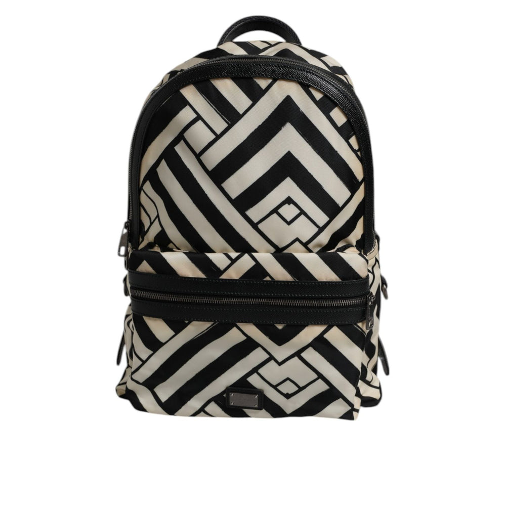 Dolce & Gabbana Black White Nylon Leather Travel Back Pack Bag