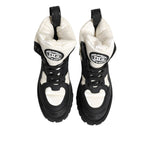 Dolce & Gabbana Black White Padded Lace Up Short Boots Shoes