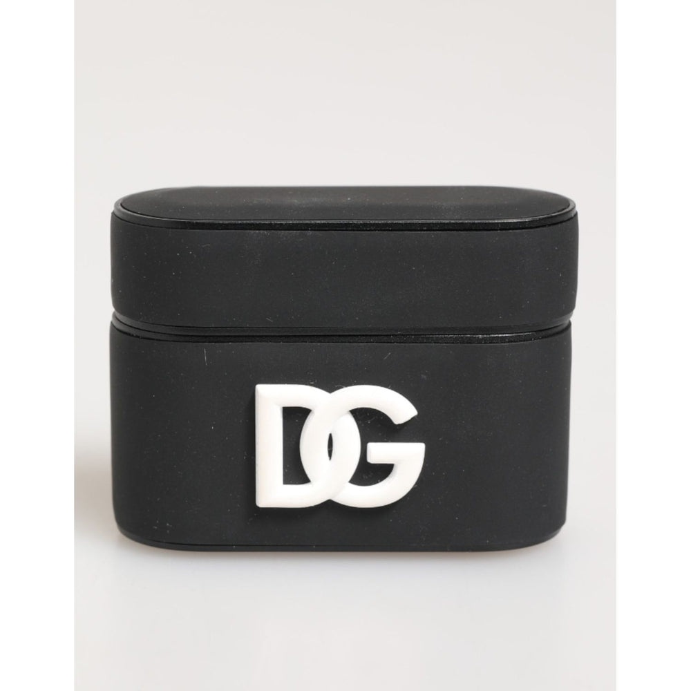 Dolce & Gabbana Black White Rubber Embossed Logo Accessory Airpods Case