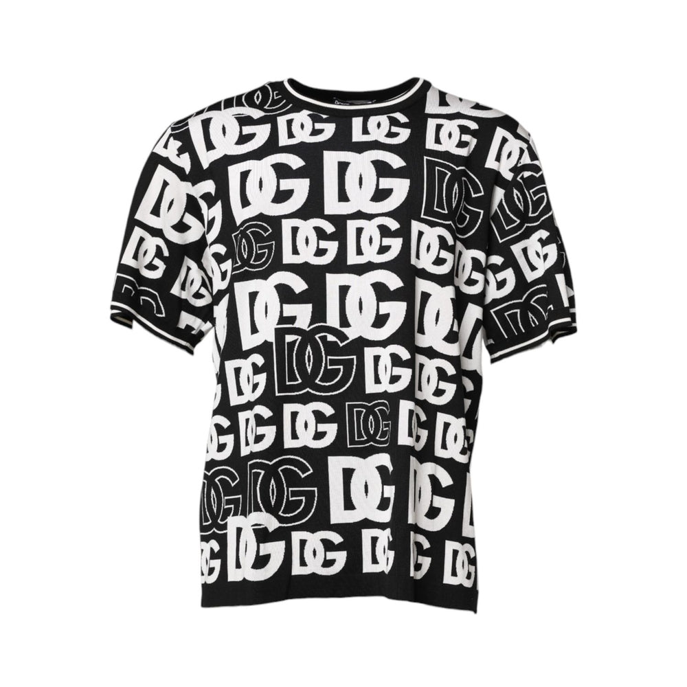 Dolce & Gabbana Black White Silk Knit DG Print T-shirt