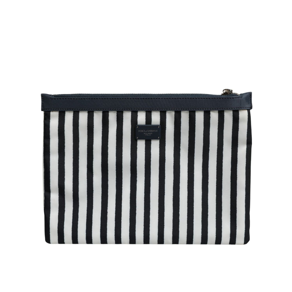 Dolce & Gabbana Black White Striped Logo Plaque Clutch Borse Pouch Bag