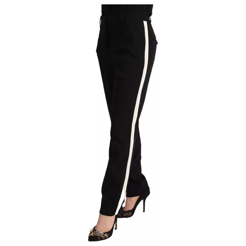 Dolce & Gabbana Black White Stripes Wool Tapered Pants