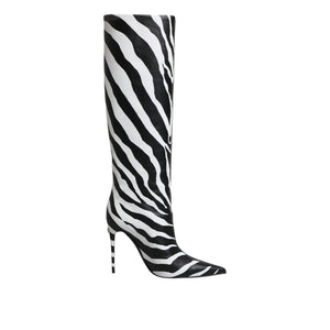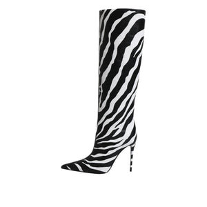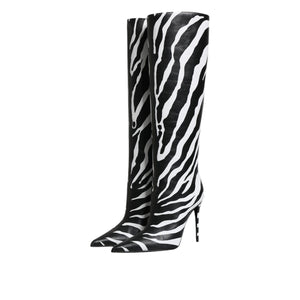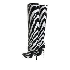Dolce & Gabbana Black White Zebra Heels High Boots Shoes