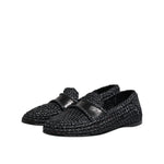 • Dolce & Gabbana Black Woven Leather Slip On Loafers Men Shoes