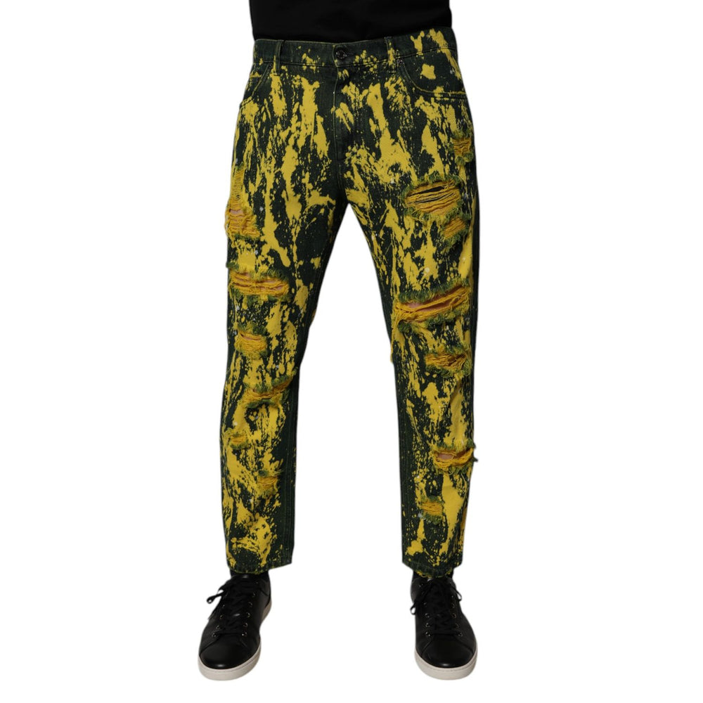 Dolce & Gabbana Black Yellow Tie Dye Tattered Skinny Men Denim Jeans