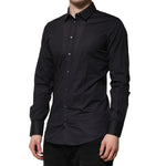 Dolce & Gabbana Blue Cotton GOLD Long Sleeves Formal Shirt