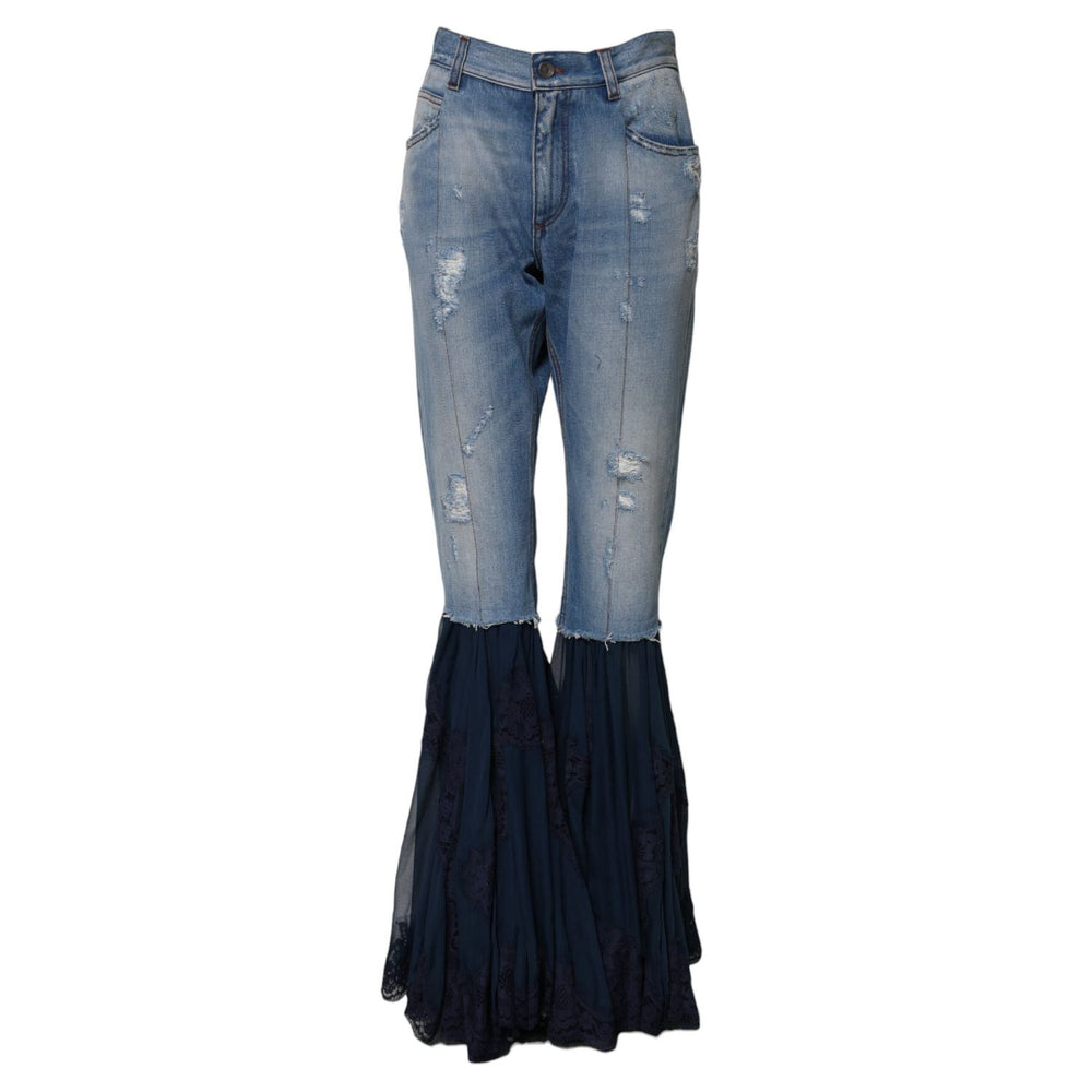 Dolce & Gabbana Blue Cotton High Waist Flared Denim Jeans