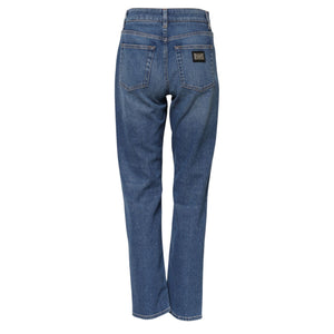 • Dolce & Gabbana Blue Cotton High Waist Tapered Denim Jeans