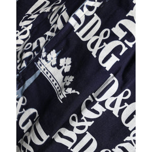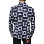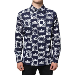 • Dolce & Gabbana Blue Crown Logo Print Slim Fit Cotton Shirt