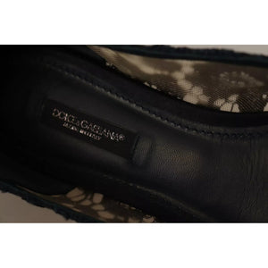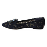 Dolce & Gabbana Blue Crystal Loafer Lace Ballet Flats Shoes