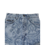 Dolce & Gabbana Blue Floral Print Denim Cotton Hot Pants Shorts