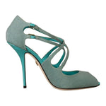 Dolce & Gabbana Blue Glittered Strappy Heels Sandals Shoes
